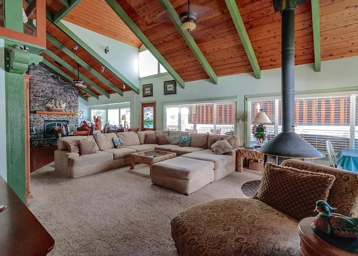 Tijdens hun verblijf in deze 4-slaapkamer Knott Lakeview Bass Lake villa kunnen gasten wandelen, fietsen en vissen proberen of een bezoek brengen aan Bass Lake, 3 km verderop.